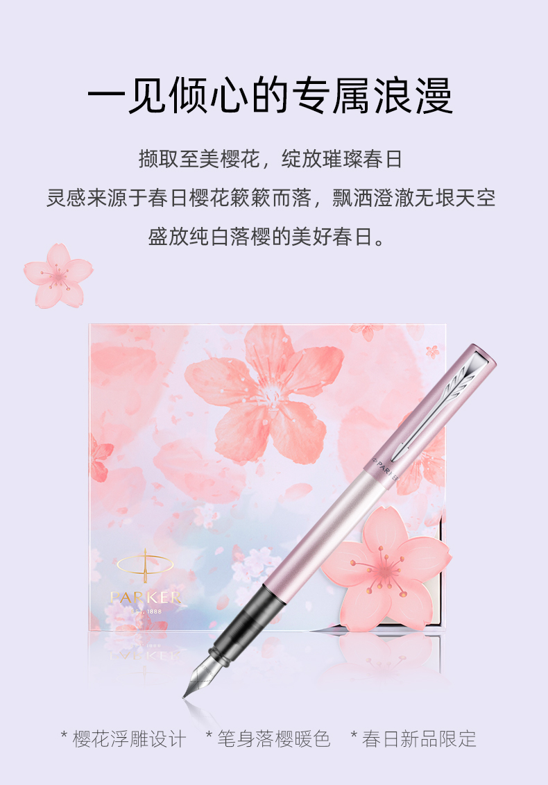 派克(PARKER)钢笔 签字笔 商务送礼 男女生日礼物 学生练字文具书法礼品套装 威雅XL系列樱花粉特别款礼盒