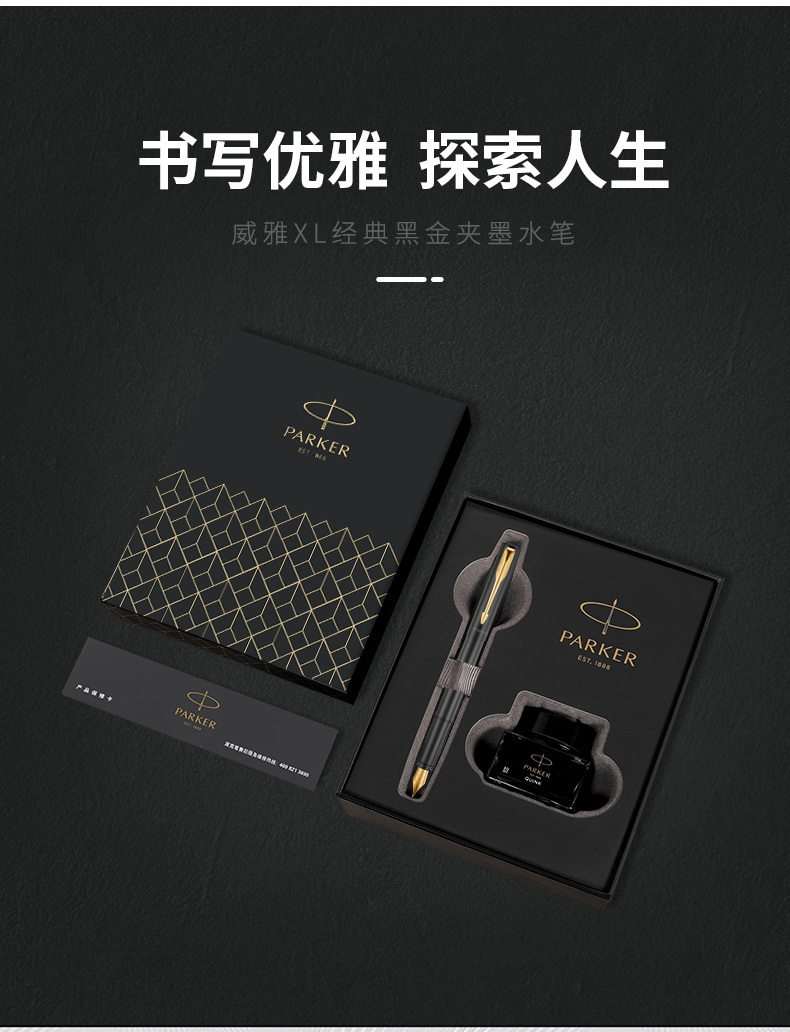 派克(PARKER)钢笔 签字笔 商务办公送礼 男女生日礼物 学生练字 威雅XL经典黑金夹墨水笔+深灰迷你墨水礼盒