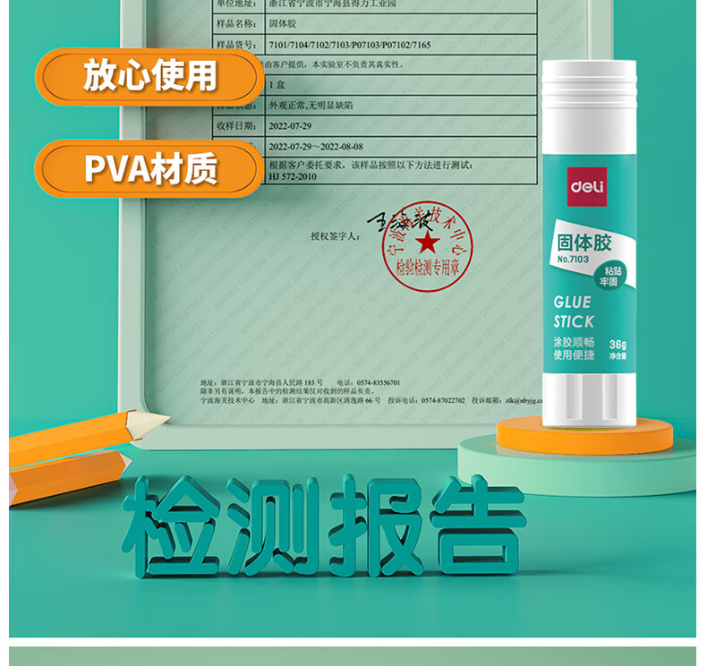 商品名称:得力(deli)36g高粘度PVA固体胶水/胶棒 快干耐用便携 学习生活手工DIY 12支/盒 办公用品 财务用品7103