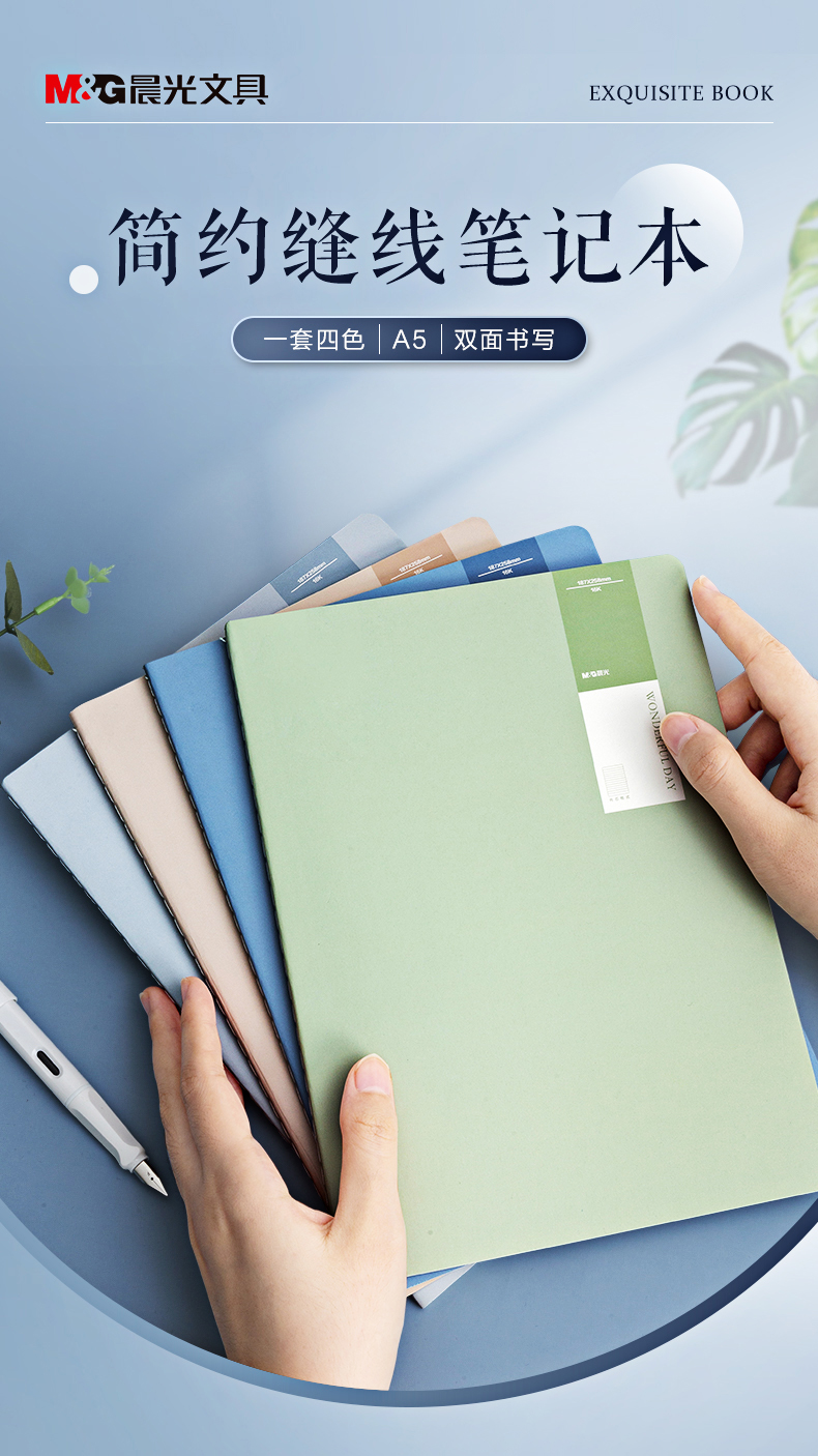 商品名称:晨光(M&G)文具a5笔记本本子 40张错题本高颜值缝线本记事本 初中学生英语日记本 学习用品 淡染4本装 FA5487