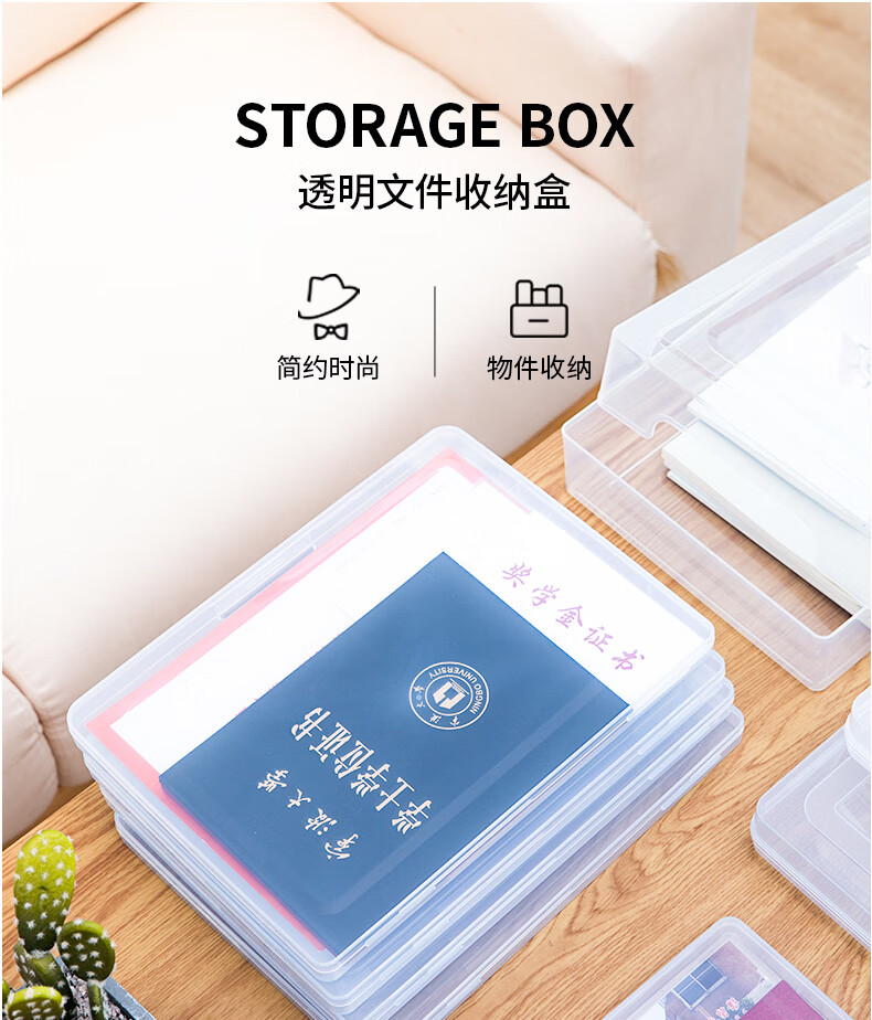 商品名称:得力(deli)A4透明便携卡扣文件盒 文件袋党建档案盒荣誉证书整理资料收纳盒 20mm厚度 5701