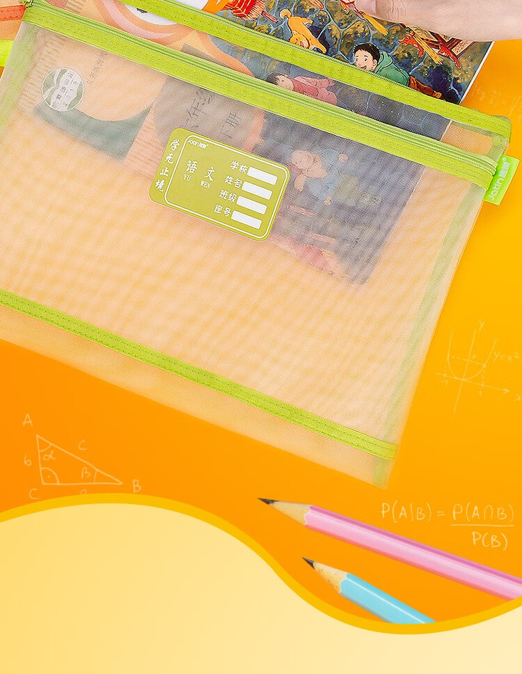 商品名称:建腾a4网纱袋拉链式文件袋尼龙双层网纱学生学科科目分类试卷收纳袋 英语 4个装