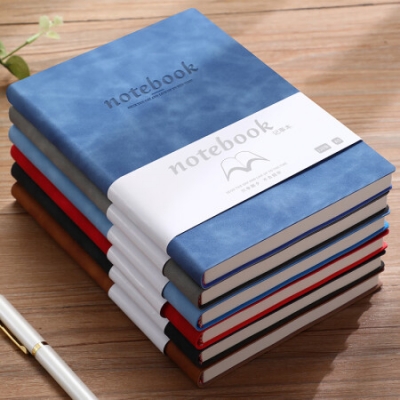 嘉然恒 笔记本本子高颜值定制A5商务软皮面记事本加厚笔记本子文具软面抄日记本工作日志会议记录本 深蓝色