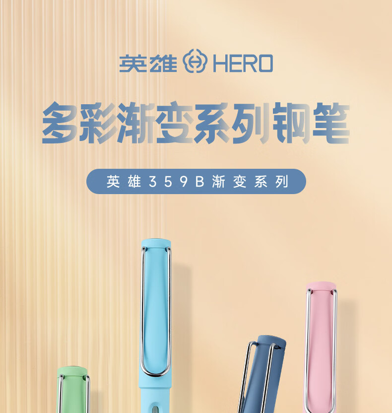 英雄(HERO)钢笔 359B 明尖铱金男女学生初学练字三年级正姿签字钢笔(附加6支墨囊) EF尖 渐变粉