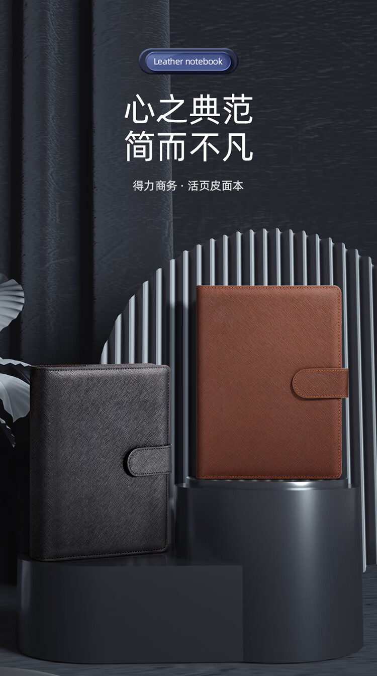 商品名称:得力(deli)25K100张商务笔记本子 活页本内页可拆卸换页灵活工作记事本子日记本皮面本办公用品