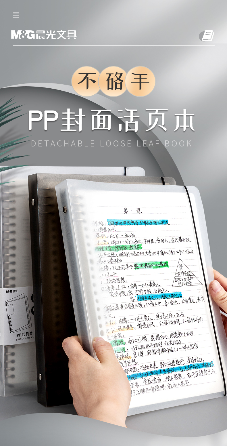 晨光(M&G)文具b5活页本 60张笔记本本子不硌手 8孔活页纸横线外壳可拆卸替芯 考研错题作业本