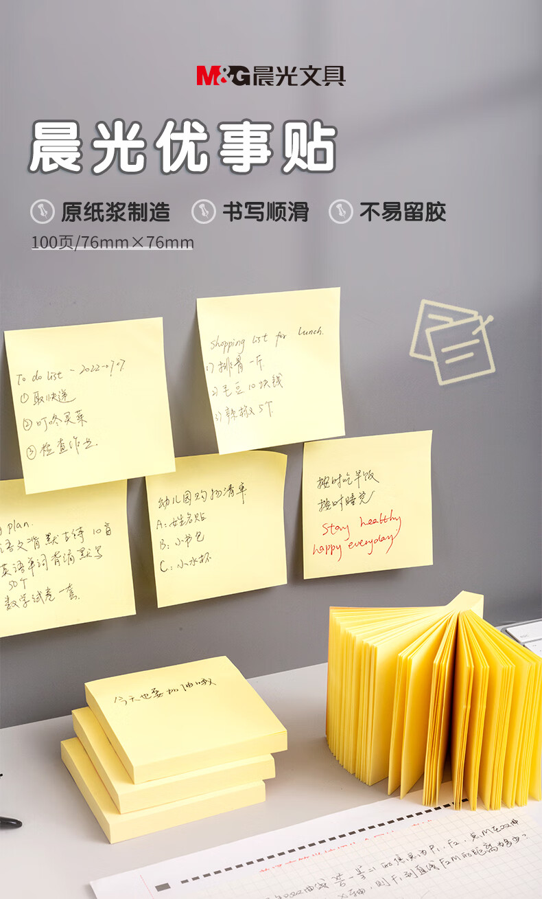 商品名称:晨光(M&G)文具100张黄色便利贴 76*76mm便签纸n次贴便签贴 记事贴留言贴记事本子 办公用品