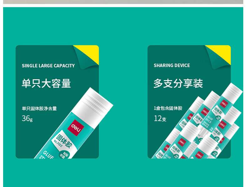 商品名称:得力(deli)36g高粘度PVA固体胶水/胶棒 快干耐用便携 学习生活手工DIY 12支/盒 办公用品 财务用品7103