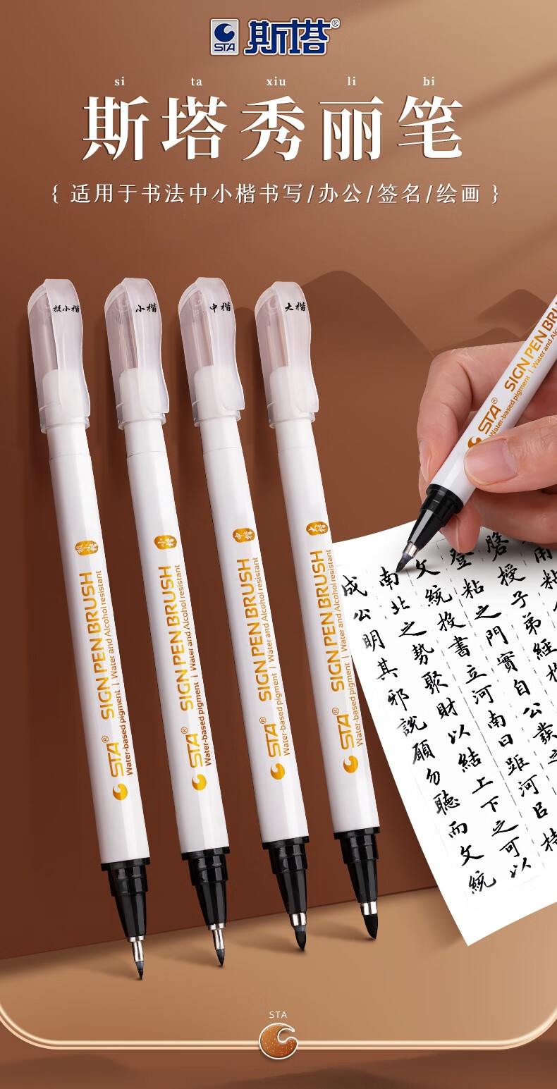 斯塔(STA)秀丽笔初学练字软毛笔大中小楷特细软头勾线工笔绘画学生成人书法练习笔可加墨