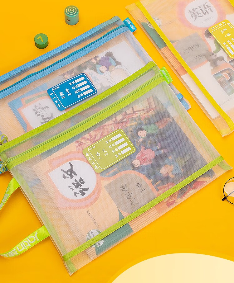 商品名称:建腾a4网纱袋拉链式文件袋尼龙双层网纱学生学科科目分类试卷收纳袋 英语 4个装